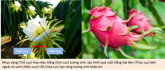 - Hoa màu trắng (Kim cục), Nhụy vàng (Thổ cục) tương sinh (Thổ sinh Kim)